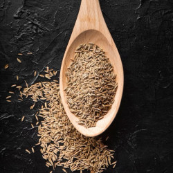 Cumin is a widely used spice made from the dried seeds of the Cuminum cyminum plant, belonging to the parsley family. It has a distinctive, warm, earthy flavor and aroma, adding complexity to various dishes, especially in Middle Eastern, Indian, and Mexican cuisines. Cumin seeds are small, oblong and yellowish brown.